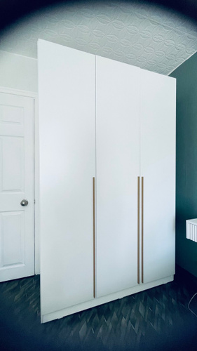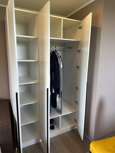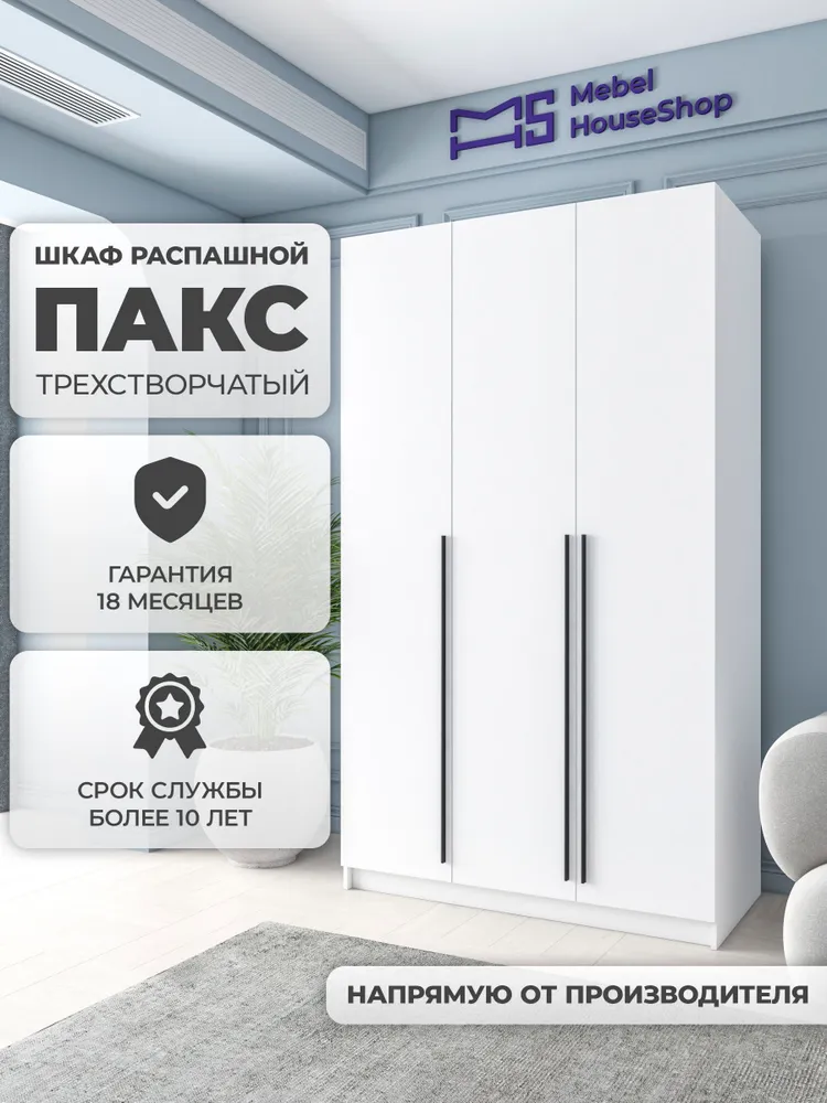 Шкаф распашной; Дверка 3шт.; Полка 7шт.; Штанга 1шт.; Ручки - 3шт.;Фурнитура.