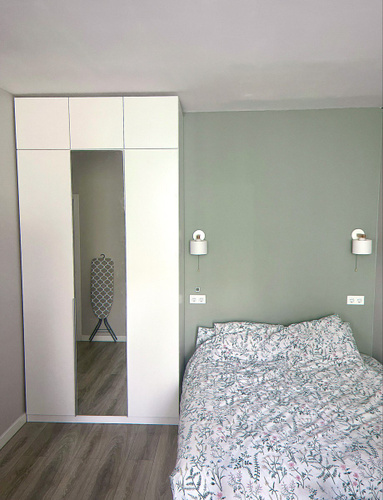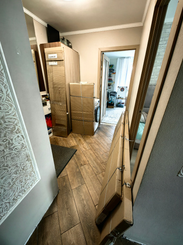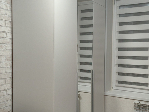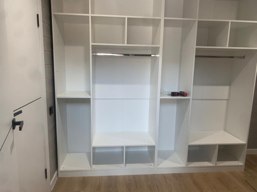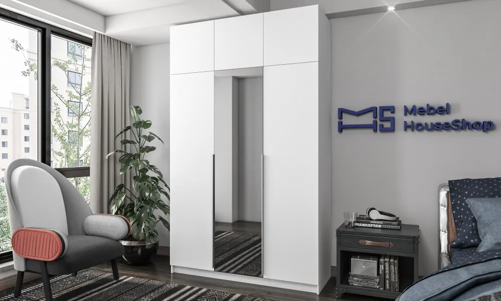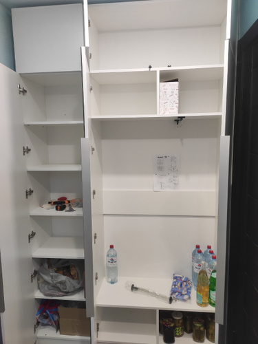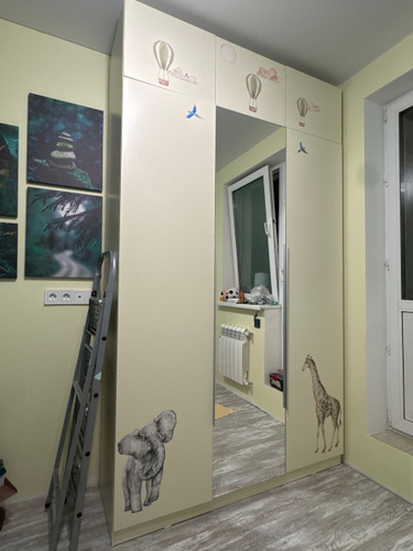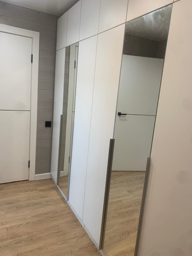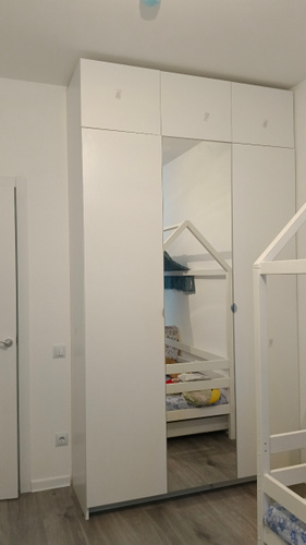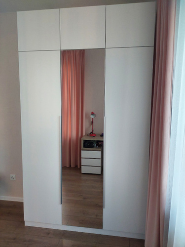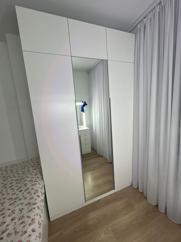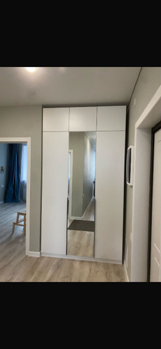 Шкаф распашной; Дверь 2шт.; Дверь с зеркалом 1шт.; Дверка антресоли - 3шт.; Полка 9шт.; Штанга 1шт.; Ручки - 2 шт.;Фурнитура.