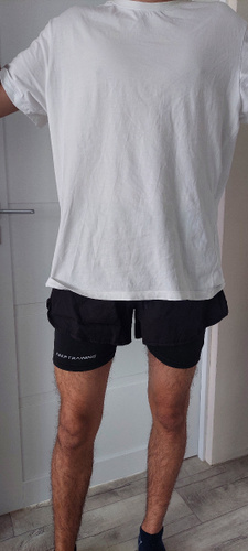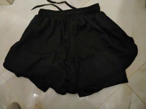 Хорошие шорты. Выбирала по таблице размеров всё подошло. Удобно заниматься. И ещё ходила в них на пляж, т.к. не люблю открытое тело в купальнике. Плюс ещё они стройнят.