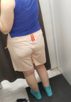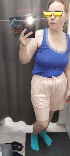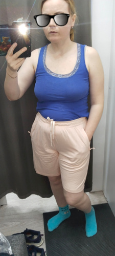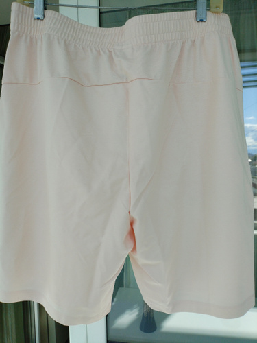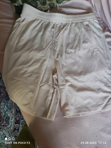 Отличные шорты. Они, видимо, спортивные, потому что внутри подкладка из трикотажа, а сами они сшиты из шелковистой ткани. В боковых швах карманы, сзади на кокетке. Фасон изумительный! Идут на хорошую подтянутую фигуру, иначе каждая "складочка' на животе будет видна - ткань не плотная, не трикотаж.