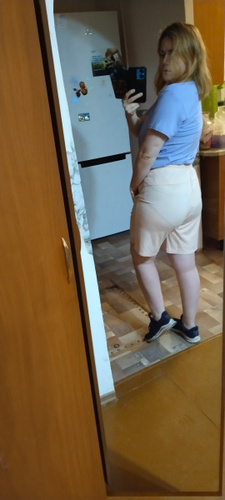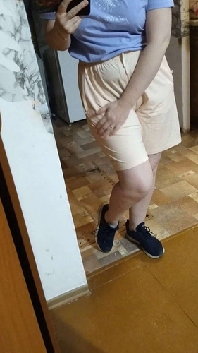 я почему-то думала, что ткань будет более плотной. у меня ОБ 98 см. поэтому шорты обтягивают зад, из-за чего любое бельё хорошо видно. Отдала более худому мужу, на нем эти шорты сидят свободнее и там все гораздо лучше. Муж доволен.