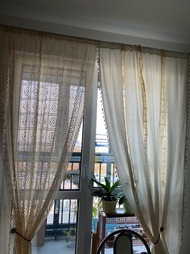Особое внимание стоит обратить на вязаное кружево и кисточки, которые придают шторе особую элегантность и стиль. Этот дизайн будет отлично сочетаться с любыми интерьерами, будь то классический, современный или винтажный стиль.