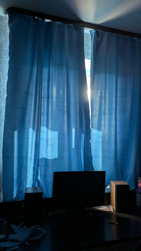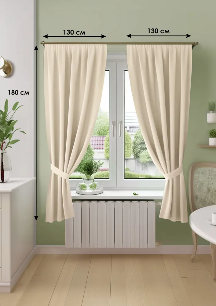Блэкаут износостойкая прочная ткань (плотность 240 г/м2) не выцветает, мягко драпируется в красивые складки, замечательно сохраняет форму, не собирает пыль, приглушает шум и поглощает свет (в зависимости от оттенка от 60 до 100%).Укороченный по высоте размер очень практичен – облегчает доступ к подоконнику и не закрывает нагревательные элементы под ним, также короткие шторы позволяют придвинуть к окну мебель не прижимая их.