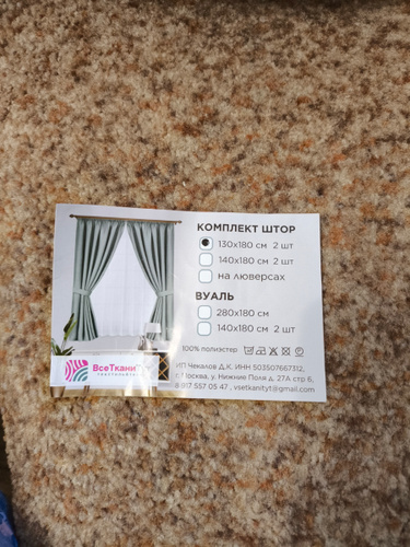 В ассортименте 21 различных оттенков. В комплекте: 2 шторы 130х180 см и 2 подхвата.