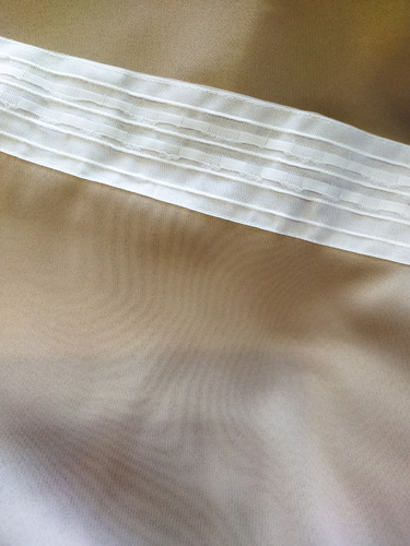 Шторы имеют широкую шторную ленту шириной 6 см с двумя рядами петель для сборки и регулировки ширины гардины. Возможны 3 варианта крепления: на крючки с помощью шторной ленты, на кольца с крючками или на штангу диаметром до 25 мм.
