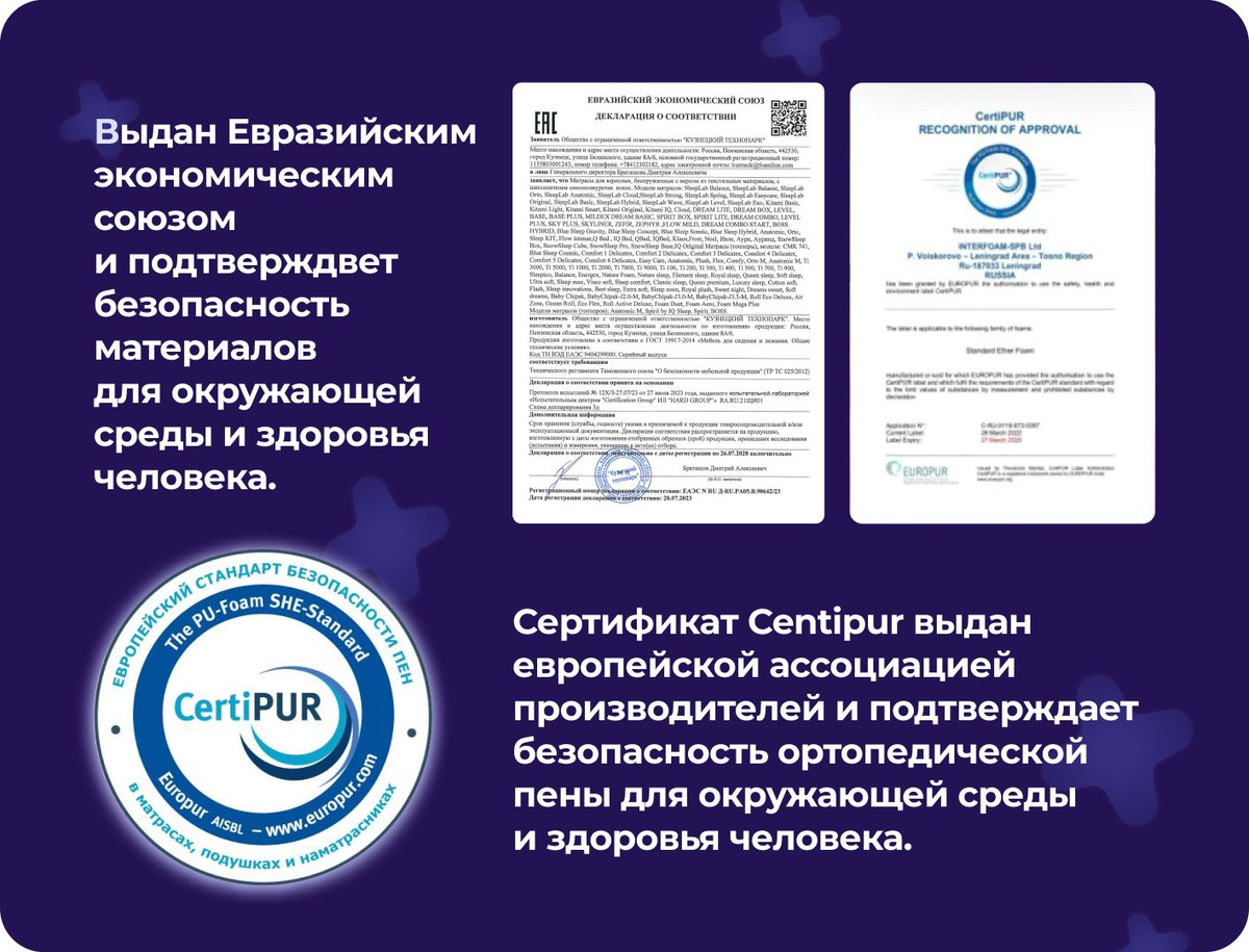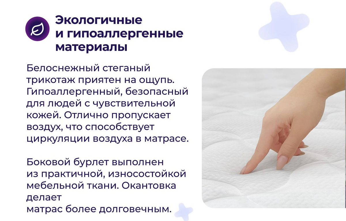 Гипоаллергенный наполнитель, Массажный эффект, Различная жесткость сторон, Съемный чехол