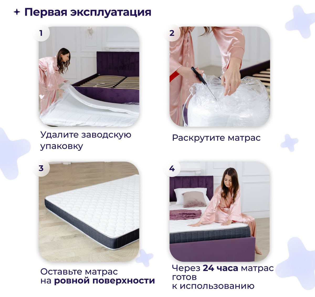 Во время заказа не рассчитывала что матрас будет прям очень хорошим, а как временная альтернатива пойдет, тем более цена не сильно кусучая. Но! По факту оказался прелестный во всех смыслах матрас! Реальность превзошла все ожидания на все 1000%. За приятную цену пришел качественный, довольно жесткий и очень упругий матрас. Я со своим весом в 73 кг спокойно сижу на краю, и он держит мой вес. Если учесть, что мой старый пружинный матрас с системой независимых пружин, жесткий и в много раз дороже, изначально проседал в половину высоты. Когда муж лег рядом, даже не почувствовала. Так же и он даже не проснулся, когда я вставала ночью, хотя спит всегда очень чутко. После распаковки набрал свою высоту и объём через пару часов. Прошит аккуратно и качественно, материалы приятные на ощупь. Спать одно удовольствие! За долгое время я наконец-то проснулась без ощущения,что меня пинали всю ночь. Из минусов ненавязчивый, но технический складской запах. На второй день почти не ощущается, но все еще есть. Думаю если бы простоял 72 часа, как рекомендует производитель, то и запаха не ощущалось бы, но я не удержалась) Ах да, еще не нашла где снимается чехол🤔 как написано в фотокарточке продавца, была бы признательна, если бы подсказали 😊