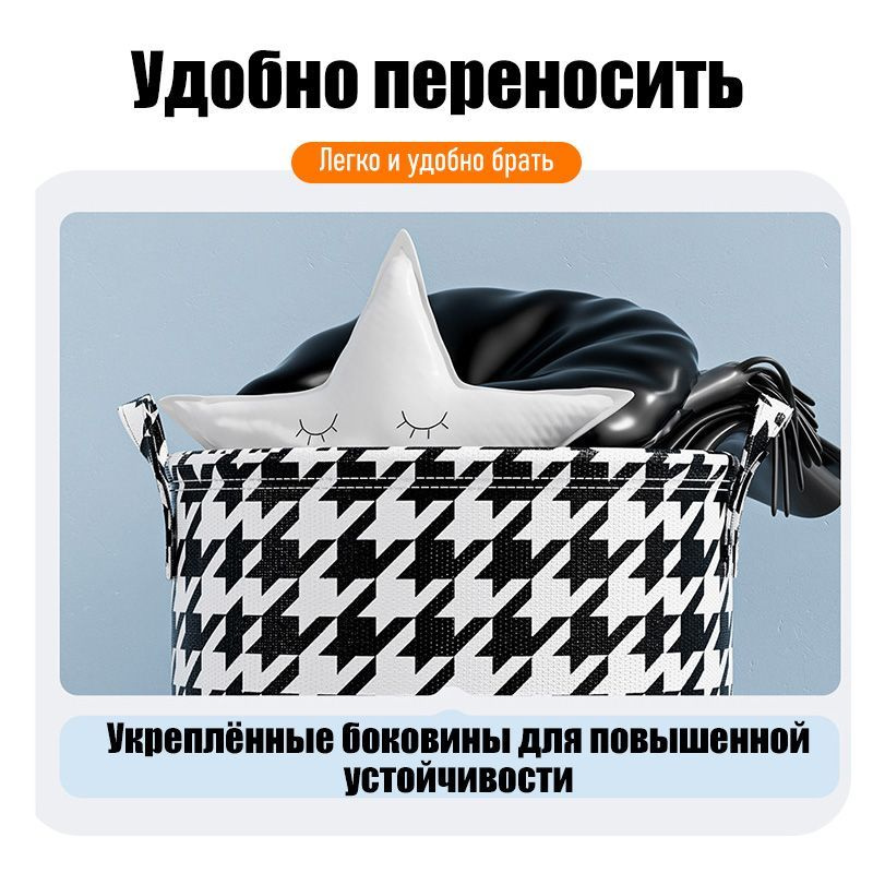Эта тканевая корзина для хранения вещей обладает незаменимыми функциями. Она водонепроницаемая и износостойкая, способна адаптироваться к различным условиям, защищая хранимые предметы. Конструкция с двумя ручками удобна, надежна и позволяет легко перемещать корзину, так что вы можете взять её с собой в любое время. Красивая завязка на шнурке обеспечивает защиту содержимого, не позволяя ему выпадать. Корзина имеет увеличенную емкость, позволяя хранить игрушки, рюкзаки и одежду на все сезоны. В свободное время её можно сложить, чтобы не занимать место, а разложить — просто и удобно.