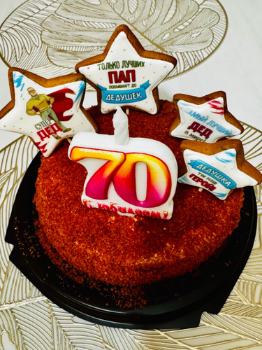 Добрый день. Цифра 70 с Юбилеем есть. https://www.ozon.ru/product/svecha-dlya-torta-tsifra-70-s-yubileem-1774835041/ С Уважением, Омский Свечной завод.