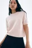 Тонкий свитерМягкий свитер тонкой вязки. Круглый вырез горловины, короткие рукава. Ребристая резинка вокруг шеи, рукавов и по краю.