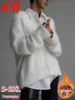 матерьял приятный, но свитер сильно маломерит. Если хотите овер или чтоб смотрелся как на модели, то от своего размера надо брать на два или три размера больше