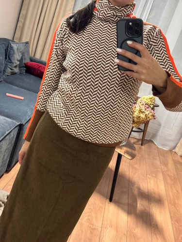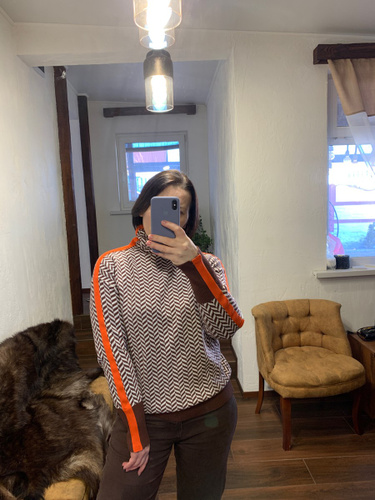Свитер оранжевый, размер 46, соответствует размеру, купила второй свитер, первый был зеленый 💚. Не толстый и не тонкий, классно подходит и под шорты, и кожаную юбку. Спасибо продавцу ❤️🔥! Готовлю сани 🛷 зимой, будет в чем осенью щеголять;)
