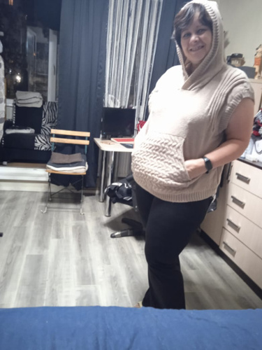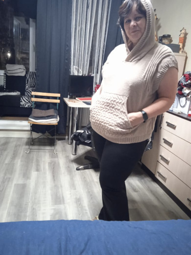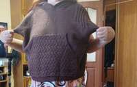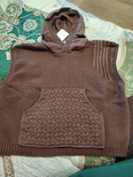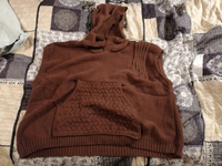 Очень теплая ,уютная вещь. Но коротковата .У меня рост не высокий 1м62 .Так что девушки учтите .Попу не прикроет . А так хорошенькая безрукавочка .Цвет приятный .Карман кенгуру выделен другим вязаным рисунком .Пришла раньше на несколько дней. Спасибо !