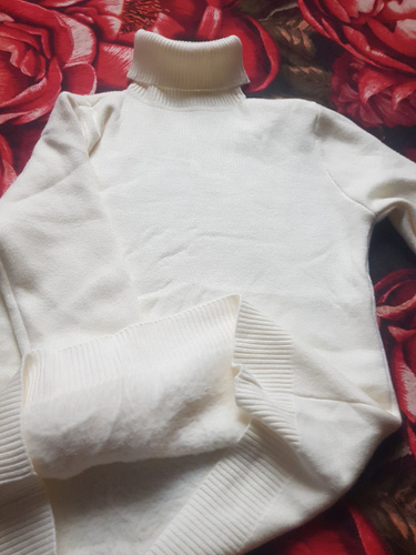 водолазка очень понравилась.тянется хорошо,мягкая,не колется.думаю,в ней будет очень тепло.цвет белоснежный.идёт в размер.советую к покупке.
