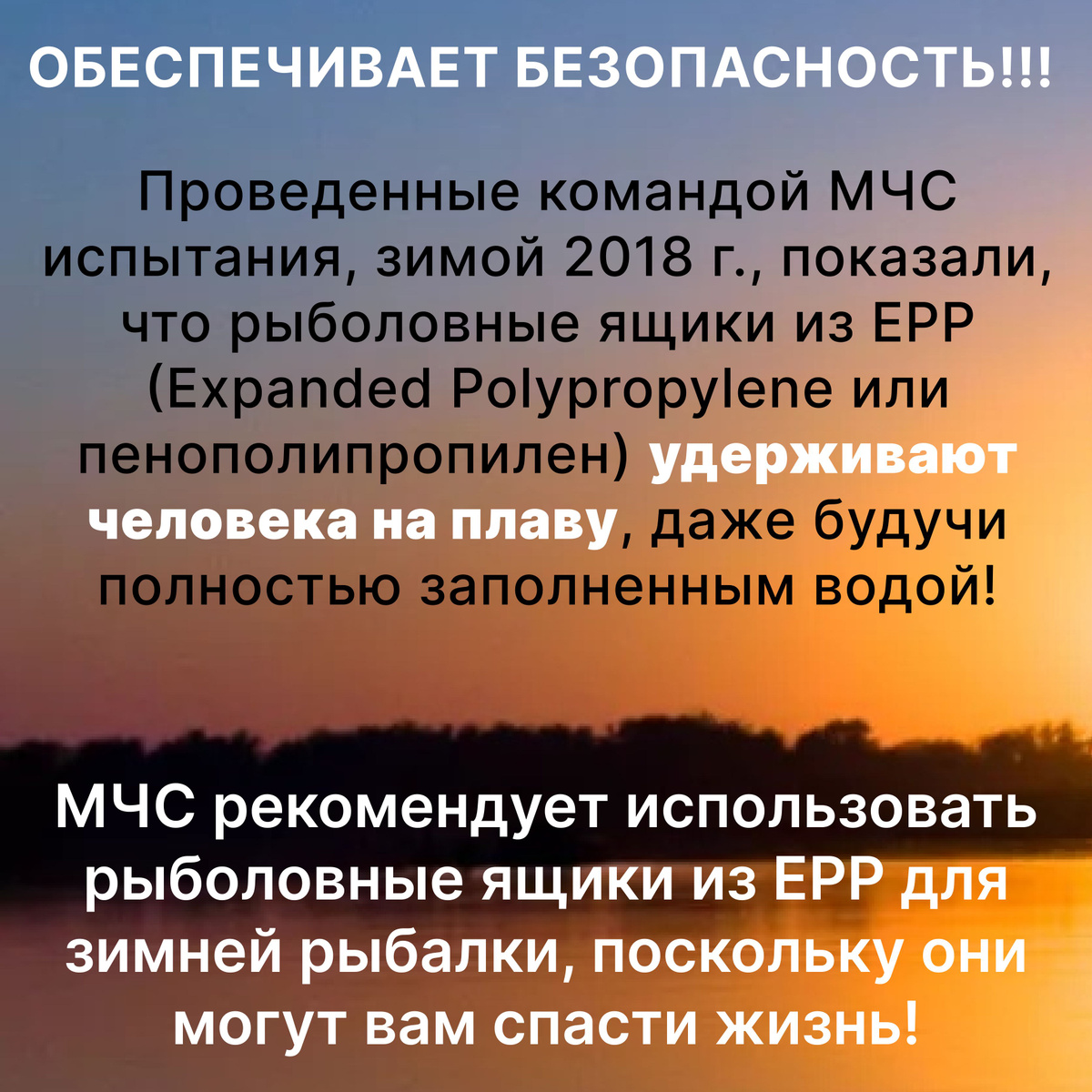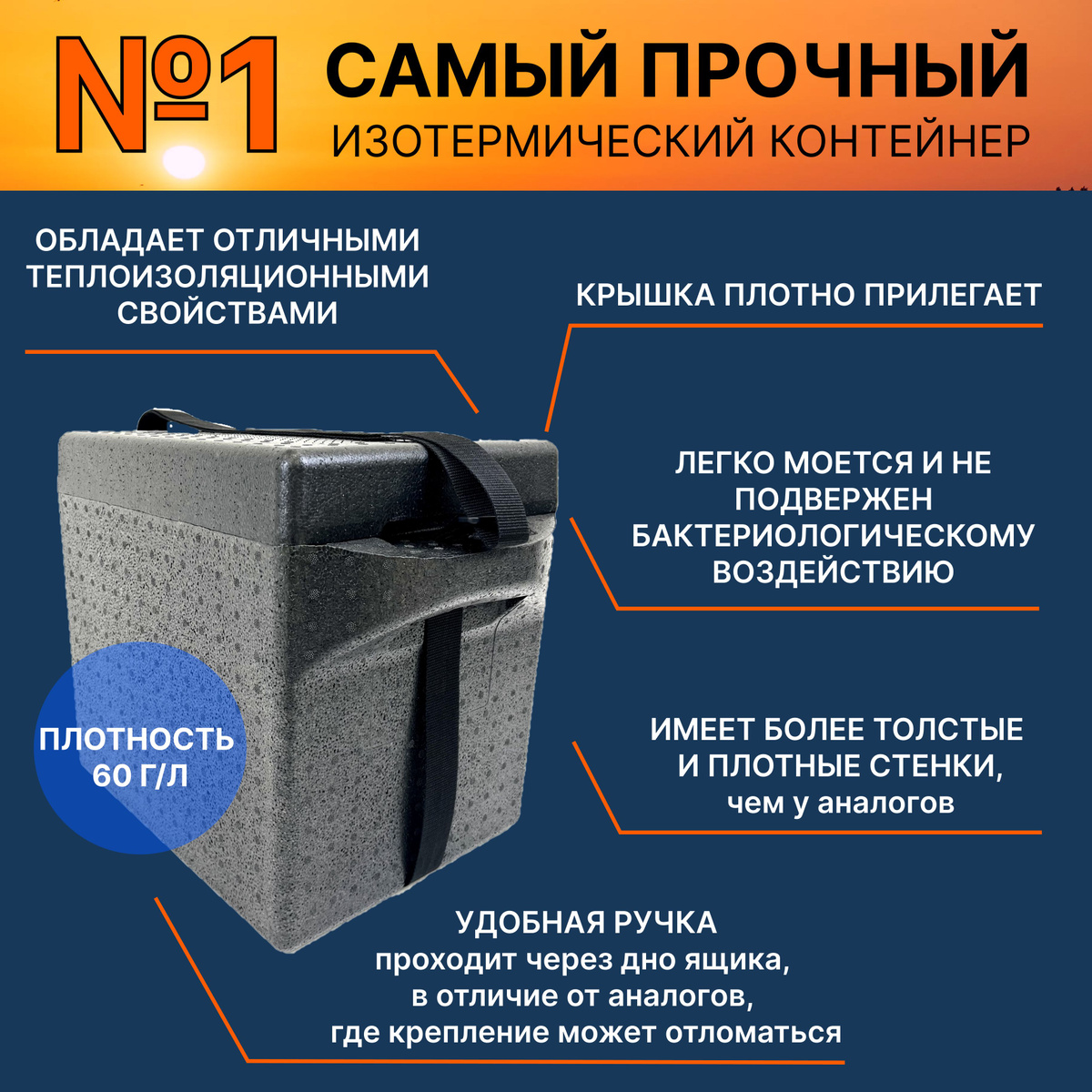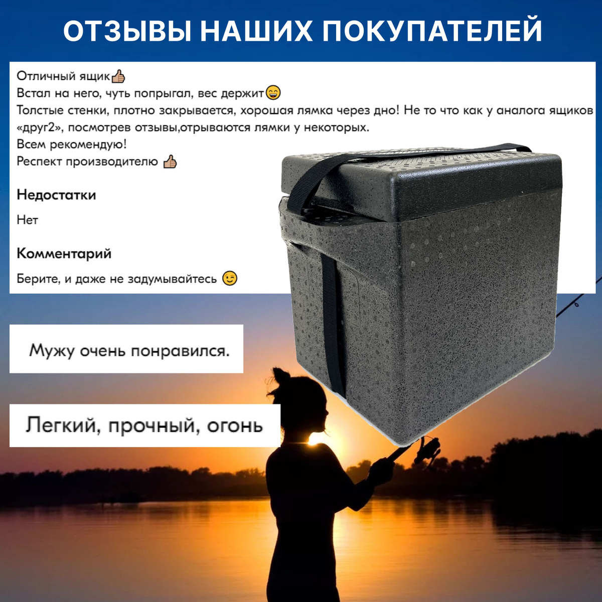 Надежность, многофункциональность, комфорт!Наш термобокс настолько крепкий, что вы можете его использовать в качестве стула на рыбалке, природе, пикнике. Выдерживает вес взрослого человека. На зимней рыбалке также отлично использовать в качестве стула, так как термобокс не накаляется на морозе. В него вы можете положить горячий обед или мотыль, они не замерзнут. А главным преимуществом рыболовного ящика для зимней рыбалки является его плавучесть, а значит может стать фактически кругом спасения.