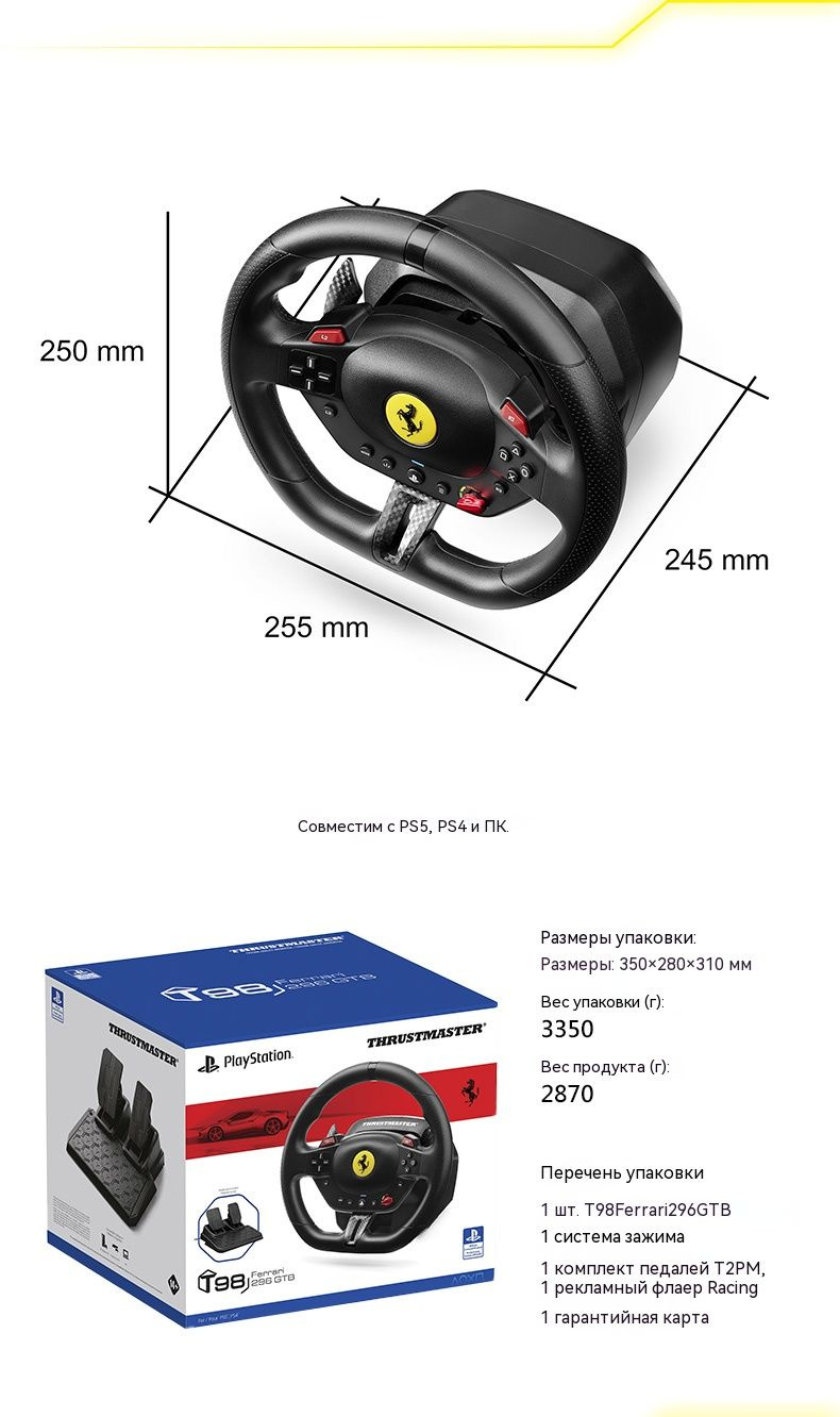 1 шт T98 Ferrari 296 GTB 1 зажимная система 1 комплект педалей T2PM 1 гоночная листовка 1 гарантийный талон
