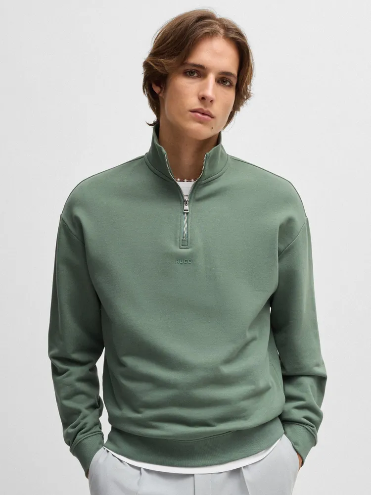 Представляем вашему вниманию толстовку от известного бренда HUGO. Она станет отличным дополнением к вашей коллекции одежды. Толстовка изготовлена из 100% хлопка, благодаря чему она не только комфортна в носке, но и обладает высокой прочностью. Воротник-стойка с застежкой на молнию добавляет практичности. Толстовка идеально подходит как для повседневной носки, так и для активного образа жизни.