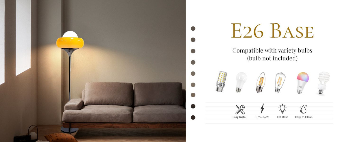 Применимый тип лампы: цоколь E26, совместимый с различными типами ламп, такими как галогенные лампы, светодиодные лампы, лампы накаливания (максимум 60 Вт; без учета ламп накаливания).Полностью регулируемая яркость при использовании с лампами с регулируемой яркостью (за исключением ламп накаливания)