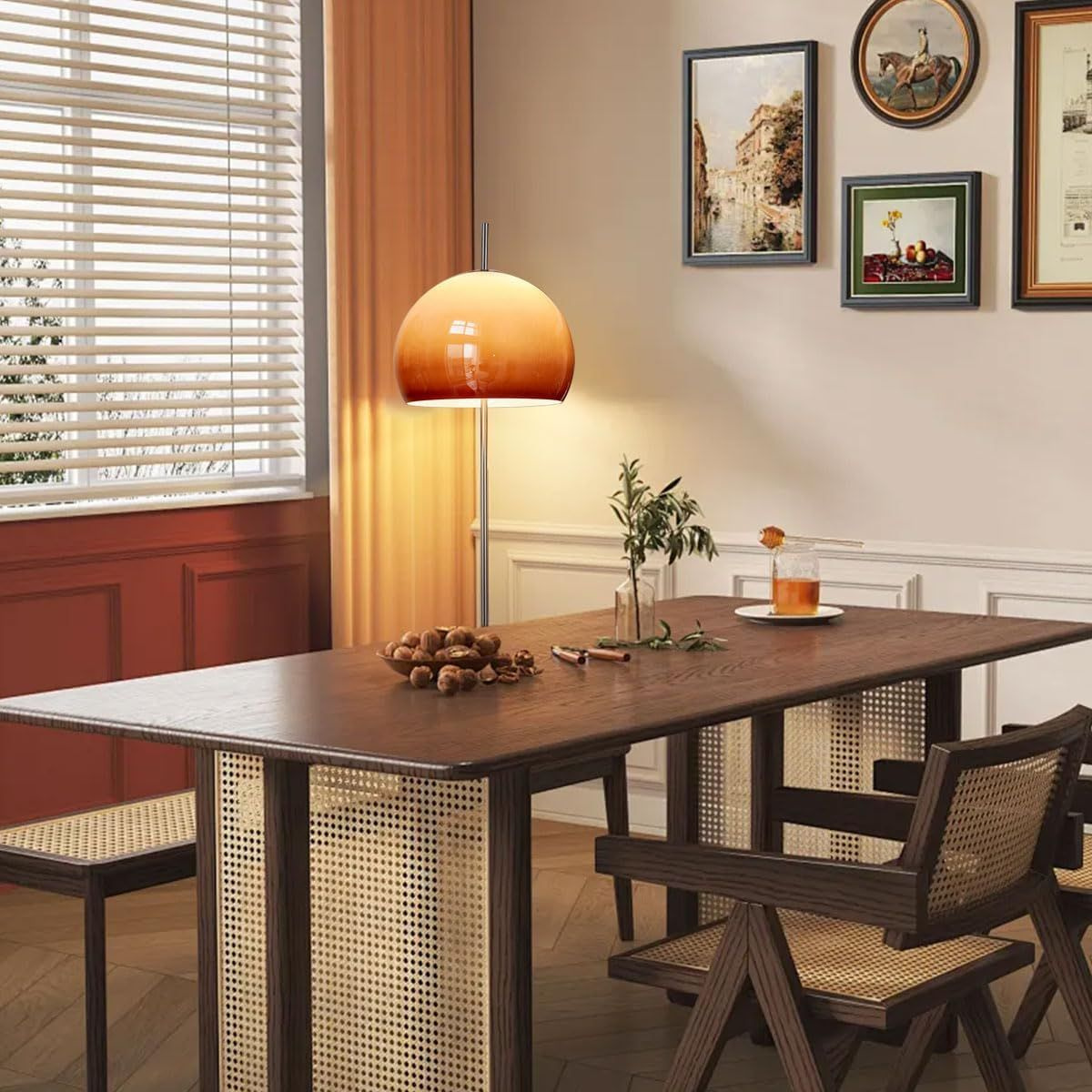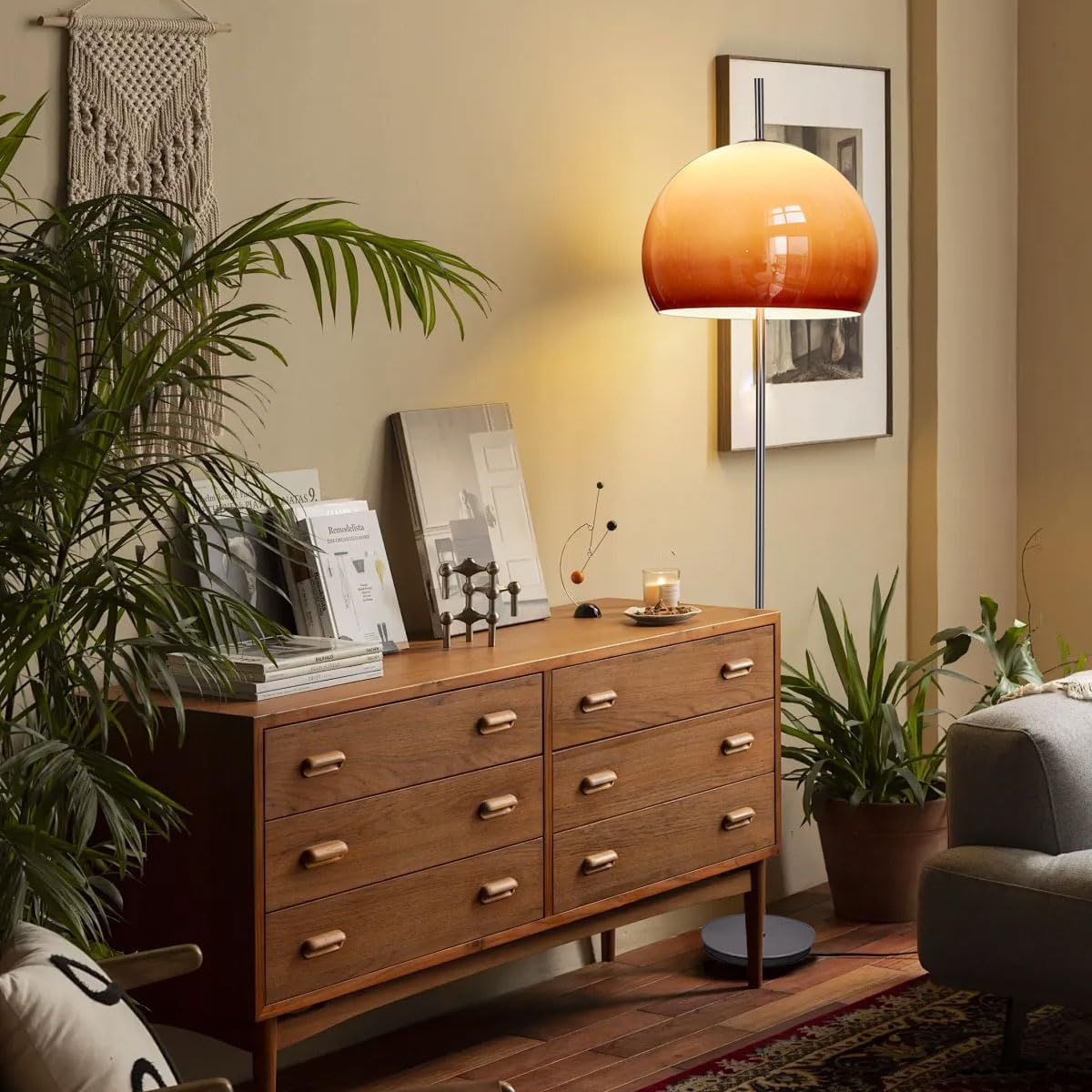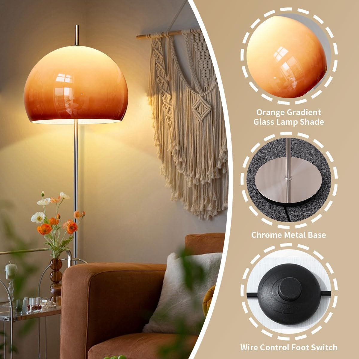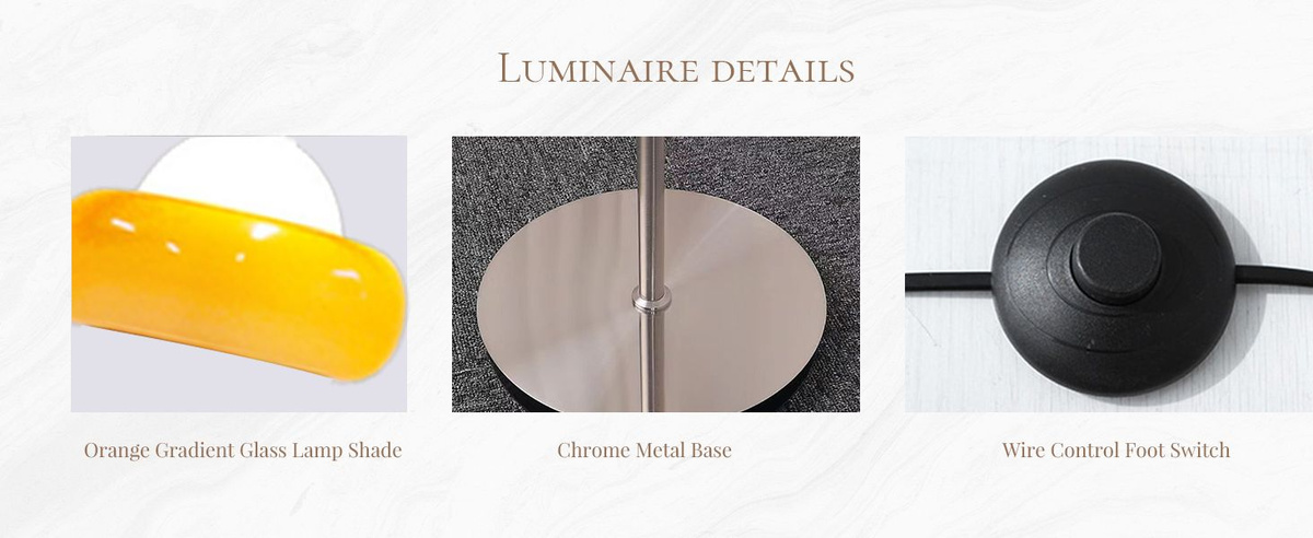 Описание продукта Материал: Торшер glass mushroom изготовлен из металлического железа с абажуром из оранжевого стекла, который создает мягкий средневековый стиль и обеспечивает комфортное и достаточное освещение помещения, в котором он установлен.
