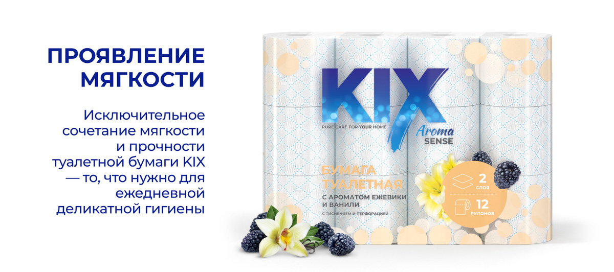 Туалетная бумага KIX Aroma Sense, Ежевика и ваниль, 2 слоя, 12 рулонов