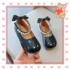 Весенние и осенние новые корейские стильные туфли для девочек с жемчужным бантом