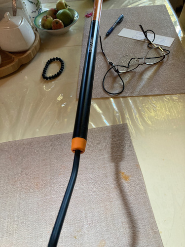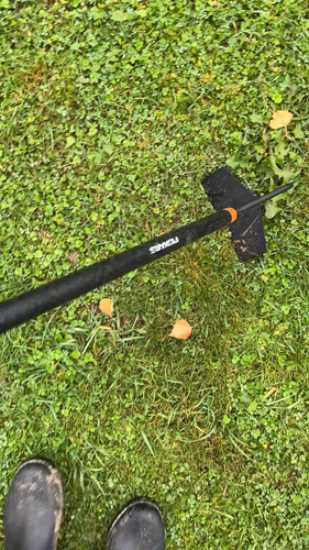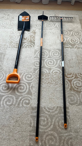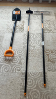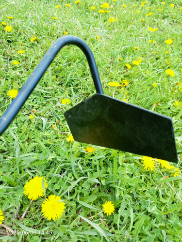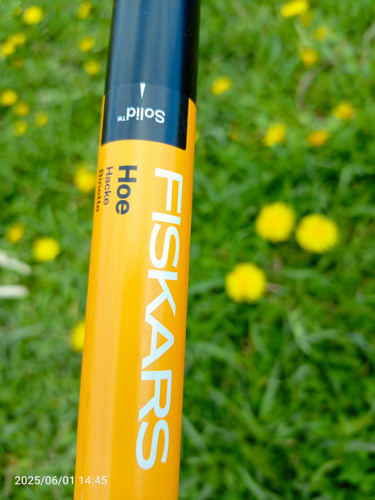 Черенок мотыги выполнен из прочного алюминия с ярко оранжевыми накладками, что предотвращает потерю инструмента в высокой траве.