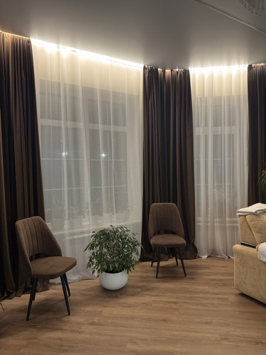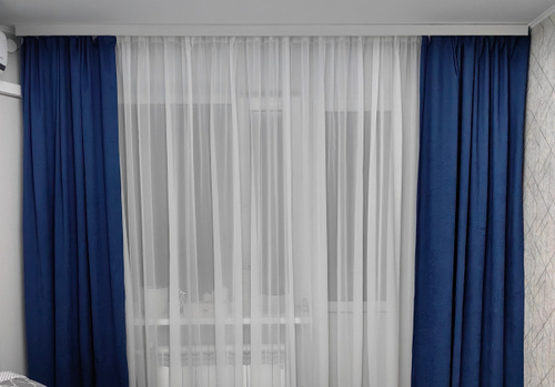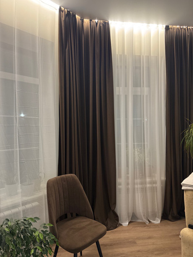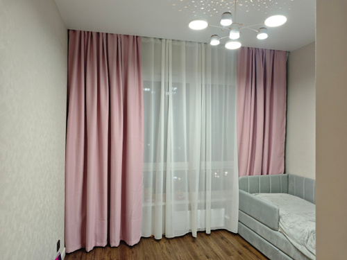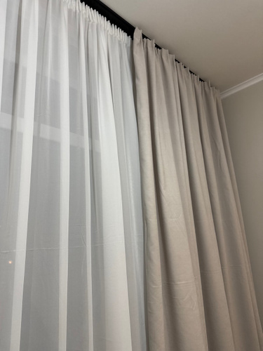 Если карниз длиннее 300 см — выберите комплект из двух штор. Швы направьте к окну — изделие будет выглядеть единым полотном.