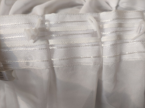 Перед покупкой сначала задала вопрос продавцу. Меня интересовало какой глубины складка, на что продавец ответил, что задрапировать тюль можно с коэффициентом от 1:1,5 до 1:3 и глубина складки будет зависеть от драпировки.