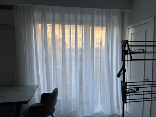 Первое впечатление очень хорошее, начиная от упаковки, заканчивая самим тюлем- приятный белый цвет с тёплым подтоном. Кому нужен кипельно-белый тюль, заказывайте цвет холодный белый. Кто-то писал в отзывах, что тюль плотный, не могу согласиться. Шифон шелковистый и без блеска, выглядит дорого.