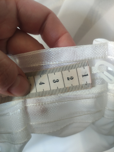После покупки моё мнение такое. Чтобы сборка смотрелась красиво необходимо стягивать туго каждую складку. Либо как я сделала, стянула туго каждую вторую складку (видно на фото). Из тюля 3м у меня вышло 2,1м. Можно стягивать и пореже, но глубина складки в любом случае будет примерно 1,75см. (На фото видно какого размера не стянутая складка)