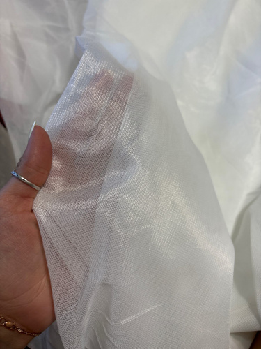Качество хорошее, но цвет не соответствует! Порадовала вакуумная упаковка, ткань без заломов после такой доставки. Этот вариант тюля не чисто белого цвета, а "шампань". Сначала хотела сделать возврат, но нашла куда повесить.