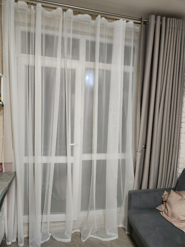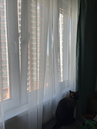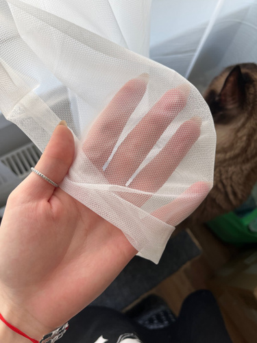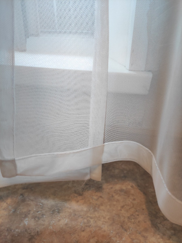 я слегка была в недоумении, получив тюль. Вакуумная упаковка, решила, что розыгрыш. Не встречала такого никогда😂. Открыла, отпарила, повесила. Проблем нет, есть слегка жёсткость в ткани, после стирки надеюсь будет мягче. Не критично, просто первые ощущения.