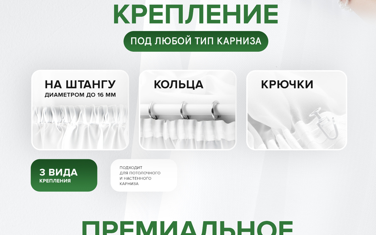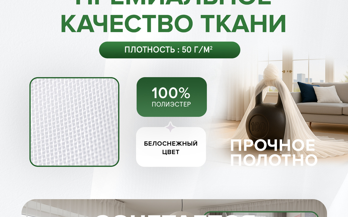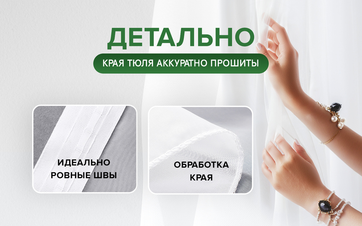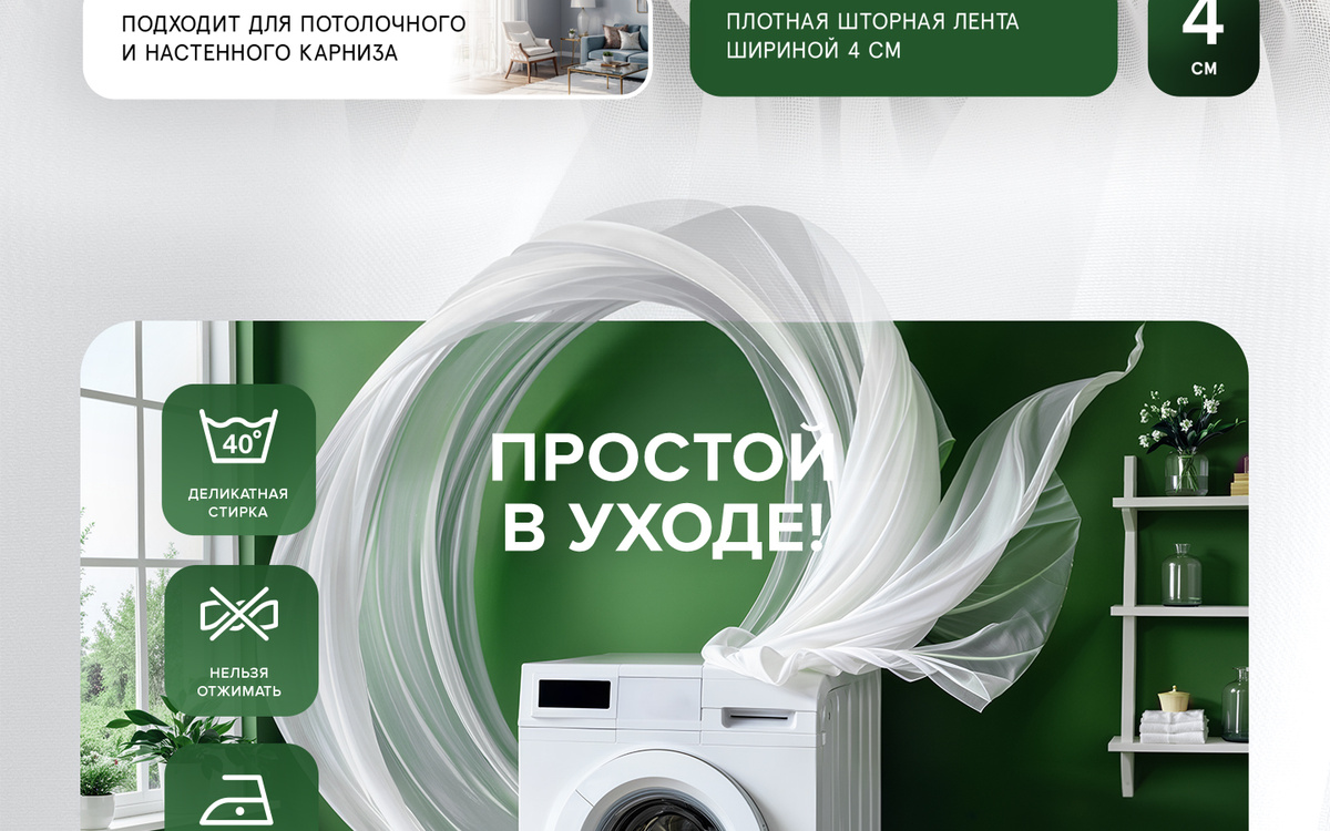 Тюль - 1 шт. 300*250 см, шторная лента (пришита)