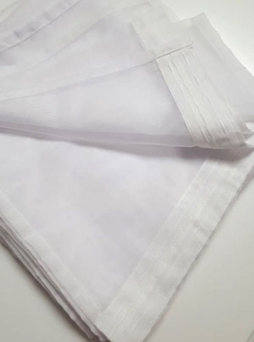 Самая обычная дешёвая тюль,сшито криво по низу/по высоте - на 260 получилось бока 264+-, центр 268+-,в принципе можно доплатить пару рублей и заказать в своём городе,но всё ровно и в размер.