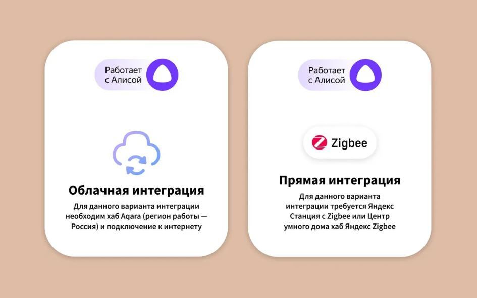 Для данного варианта интеграции требуется «Центр умного дома хаб Яндекс Zigbee» или Яндекс Станции с Zigbee.