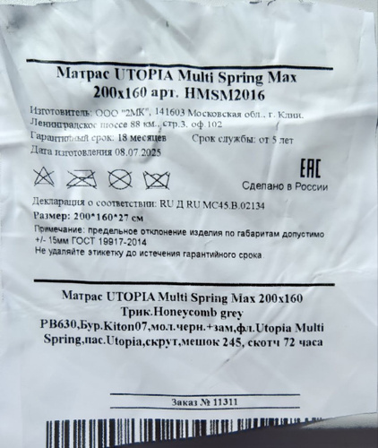 Первое впечатление очень хорошее, упакован хорошо, лежит расправляется)) дополню попозже, пока все супер!) 10 ночей спустя дополняю отзыв - матрас супер, спим на более мягкой стороне, очень комфортно (наш вес 55/75) - в меру мягкий, в меру упругий, спать одно удовольствие!🩷