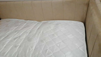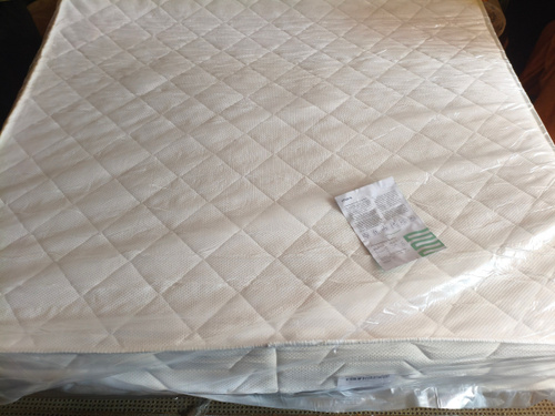 За 8300 вполне неплохой матрас, хоть боковины не защищены, но не думаю, что там быстро порвётся. Пришло всё целое, в мешковине с наклейками, но по ним совсем не понять какие его габариты по толщине, узнать можно только вскрыв. Едва размотали стрейч-плёнку, как матрас начал раскручиваться сам, ширину показал сразу 140, но длину 186см. Затем через несколько часов замерили снова и он уже приблизился к 190, а по толщине к 20, но это если учитывать декоративный толстый бортик, а так думаю 19 см в реале и вряд-ли уже будет больше. По ощущениям вполне неплохо, написано на сайте, что у него разная жёсткость, правда это не особо заметно, хотя чувствуется в одной из сторон вложено типа дополнительного листа поролона. Первые впечатления положительные, но разумеется только спустя некоторое время можно будет понять, что там стоят за пружины и как они там прочно вшиты.