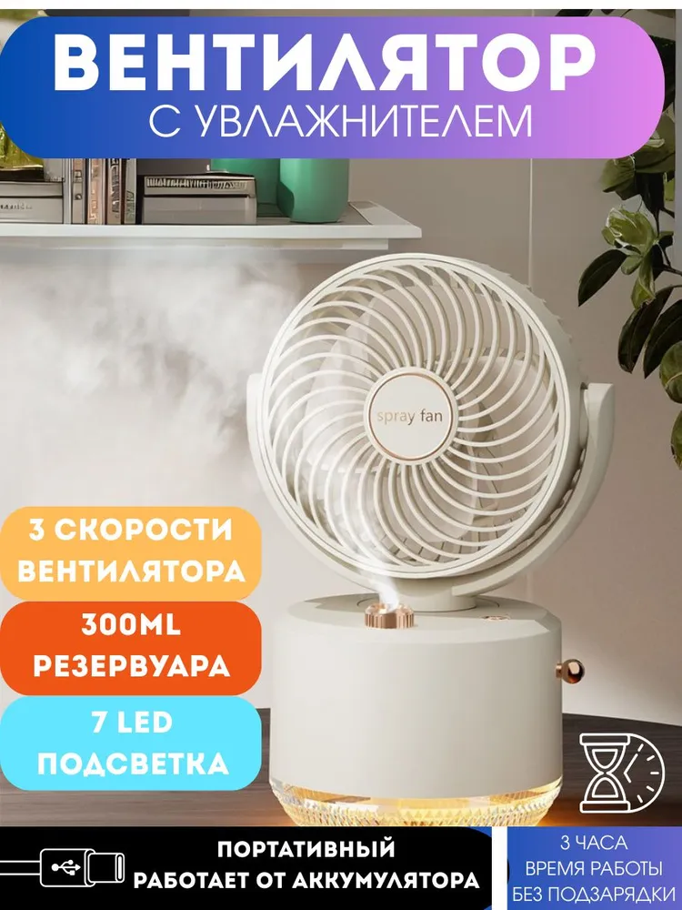 Вентилятор настольный с увлажнителем воздуха X1 две влажные палочки для увлажнителя X1 Type-C зарядный кабель X1 Инструкция на русском языке X1