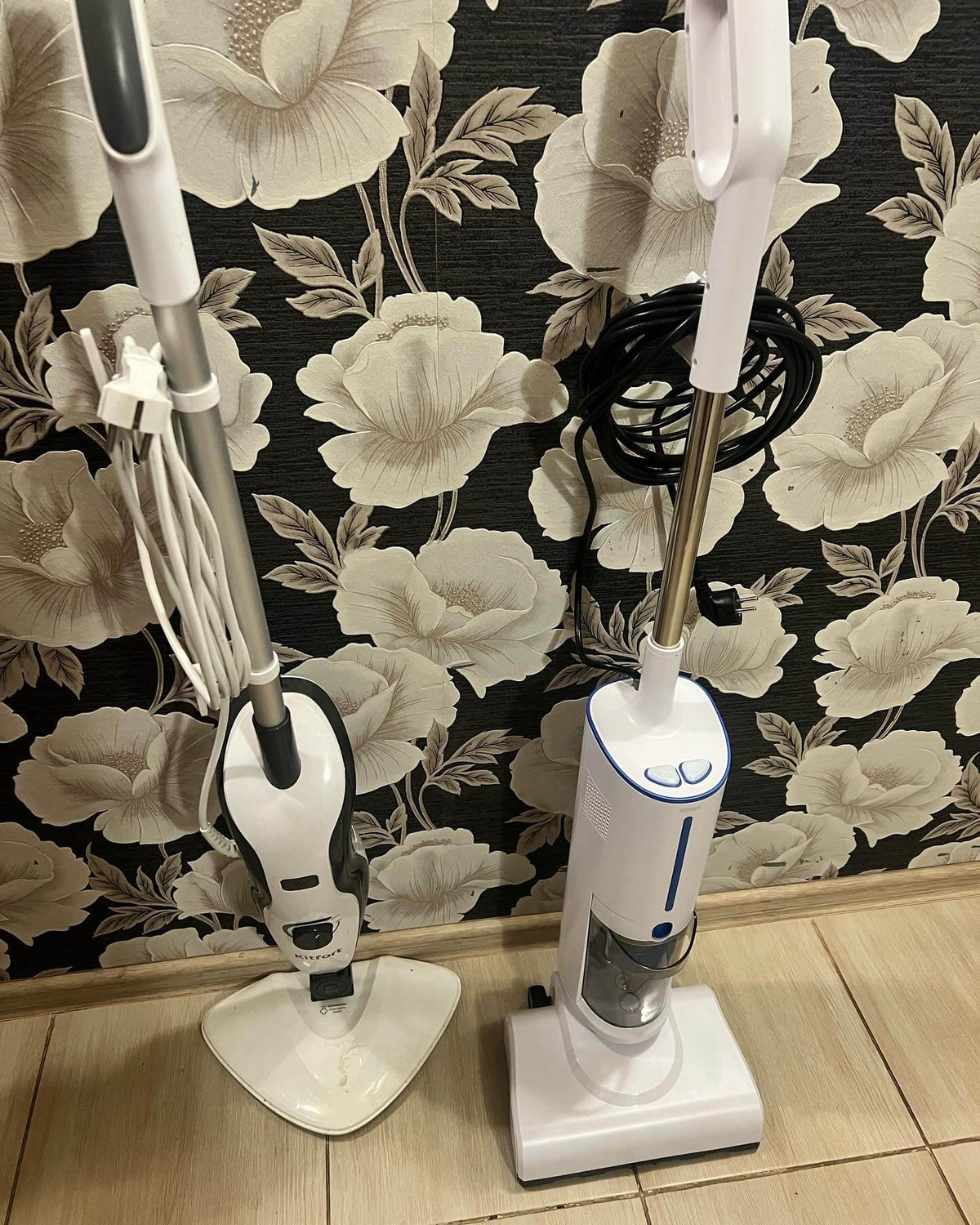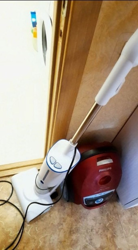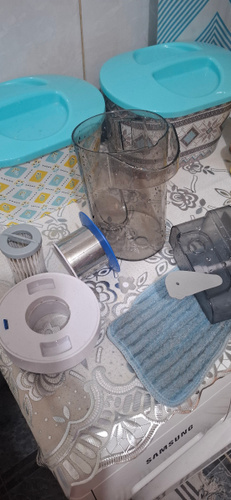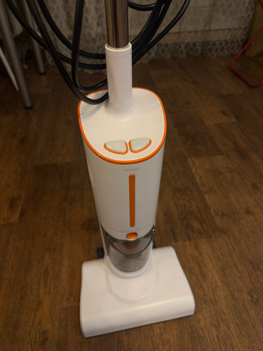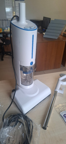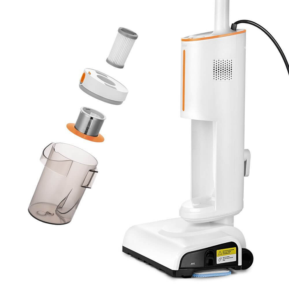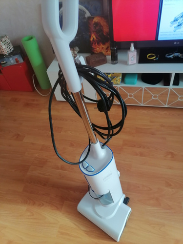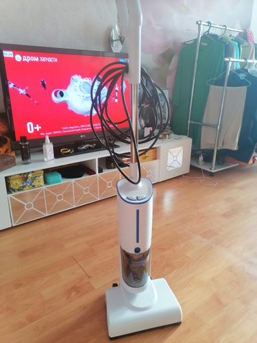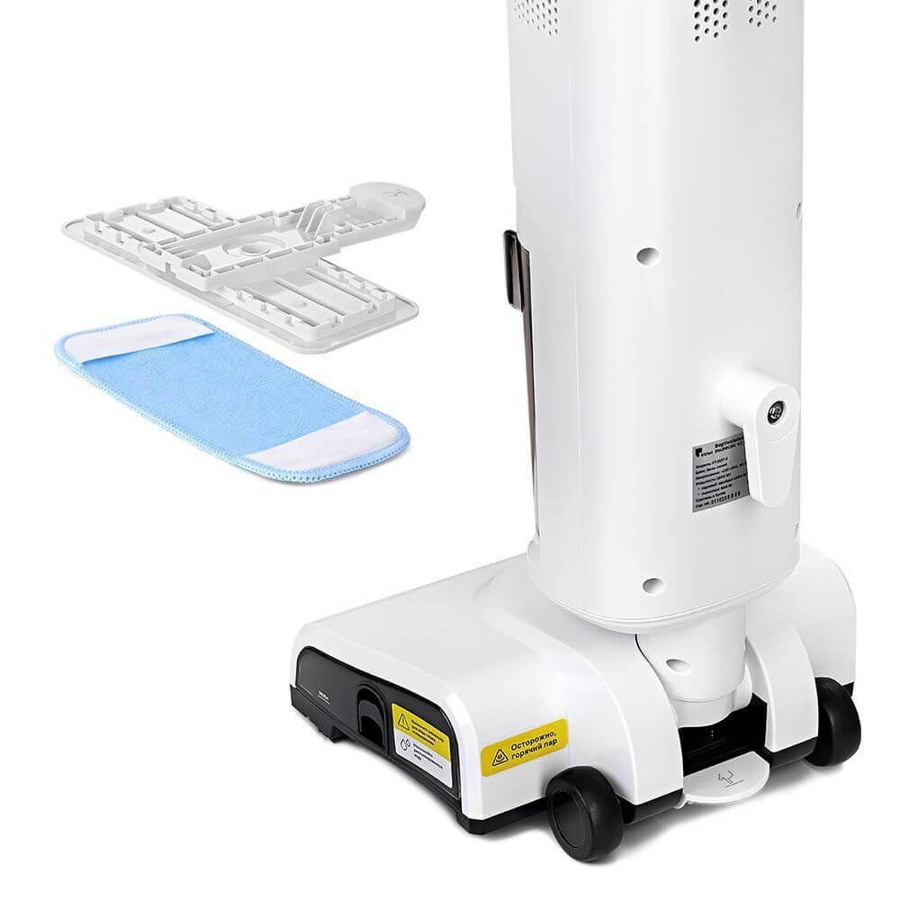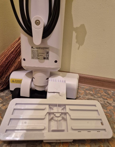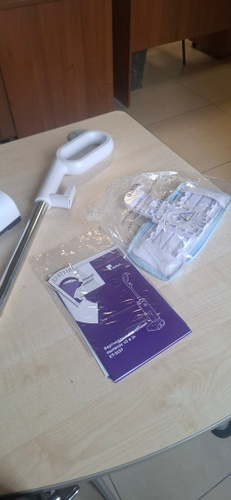 1. Пылесос с установленными резервуаром для воды, пылесборником, фильтрами и щеткой для пола — 1 шт. 2. Удлинительная трубка с рукояткой — 1 шт. 3. Держатель тряпки — 1 шт. 4. Тряпка для пола — 1 шт.