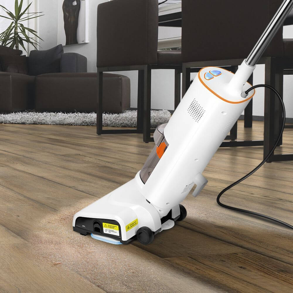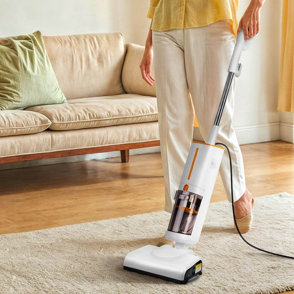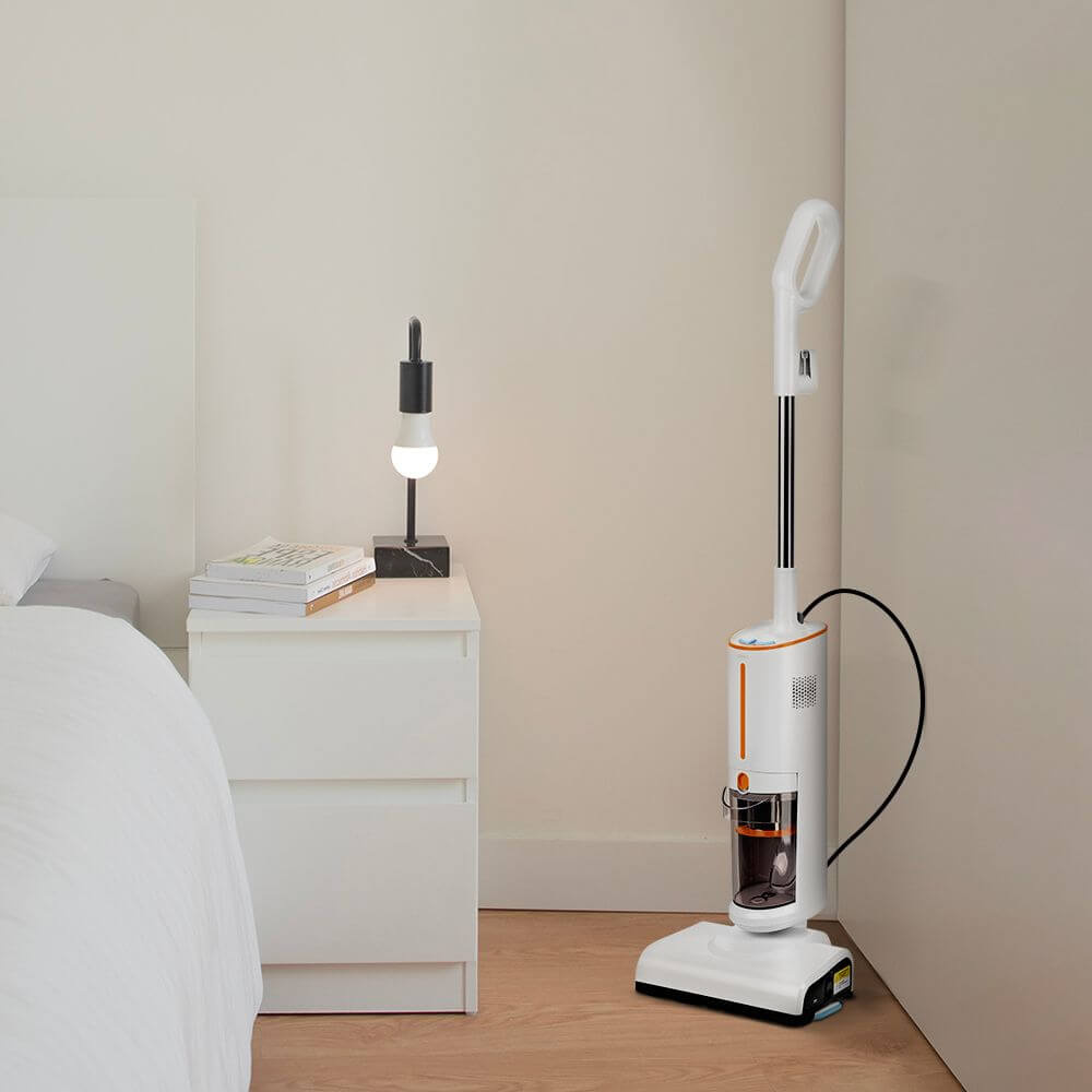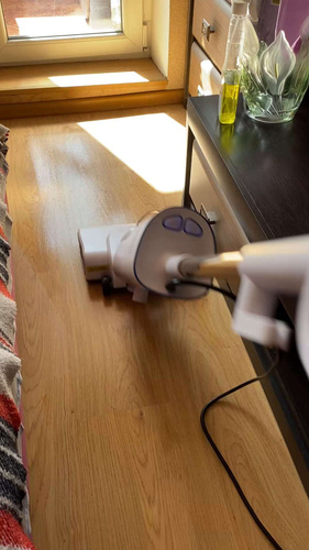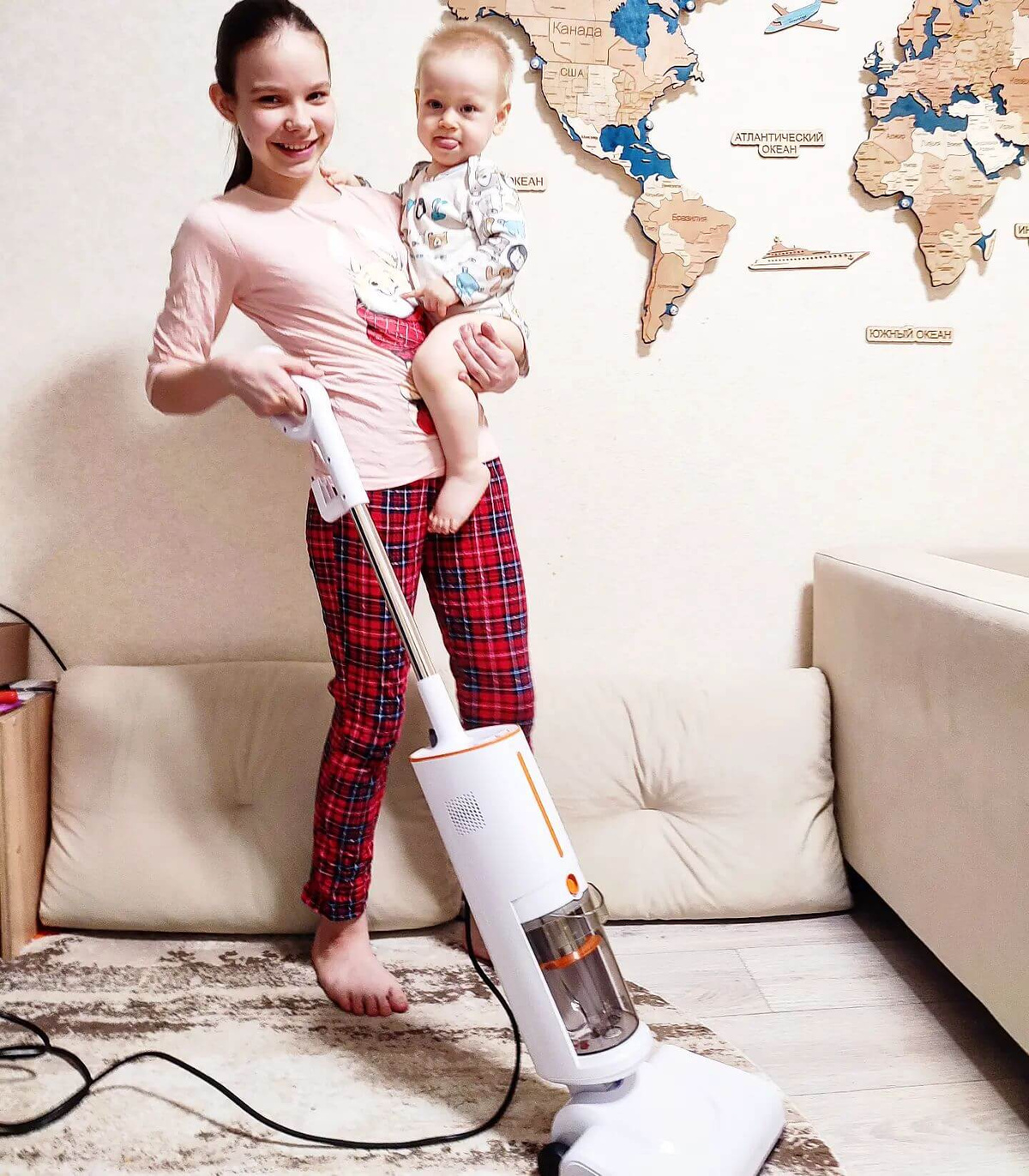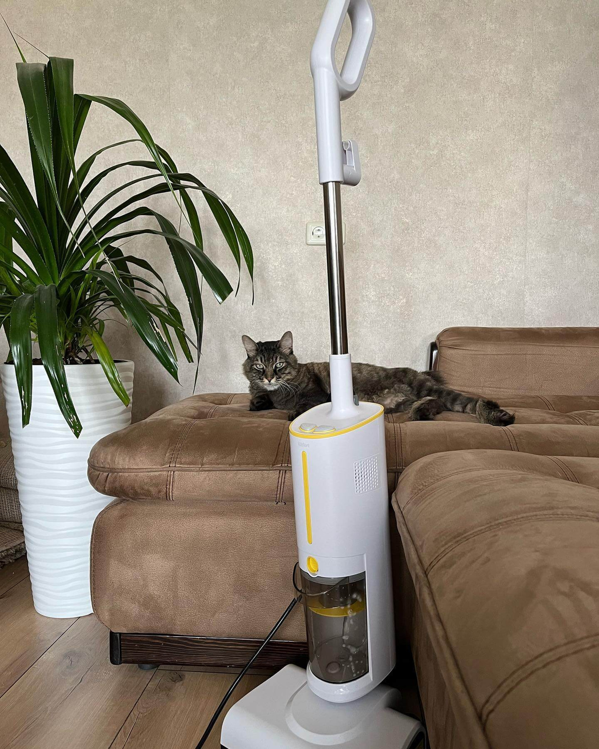 1. Пылесос с установленными резервуаром для воды, пылесборником, фильтрами и щеткой для пола — 1 шт. 2. Удлинительная трубка с рукояткой — 1 шт. 3. Держатель тряпки — 1 шт. 4. Тряпка для пола — 1 шт.