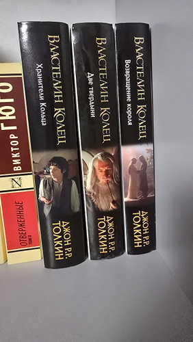 Книги из этой серии начал собирать относительно недавно. Читал Хоббита и Властелина очень давно, это были одни из первых прочитанных мною книг от корки до корки. Вторыми, если быть точнее, первым был Гарри Поттер, на тот момент были изданы только первые три книги серии. И вот в ожидании четвертой части ГП я начал искать что-то в том же направлении. Посоветовали «Властелина колец» и не просто как произведение, а конкретную книгу. Ей стало издание 2004 года от Эксмо (первая книга серии «Гиганты фантастики/фэнтези»), в переводе В.А.М. (Валерия Александровна Маторина). В неё вошли основные произведения профессора: Хоббит, трилогия ВК, карты и приложения. Ту книгу, как и всю серию, мне пришлось продать, отчасти из-за переезда в другой город. И недавно встал вопрос перечитать Толкина. Изначально выбор пал на издание из серии «Толкин: Разные переводы» в знакомом мне переводе В.А.М., но хотелось отдельные иллюстрированные тома. Тут уже выбор сужается - либо Гордеев, либо Ли. Мне больше по душе иллюстрации Алана Ли.