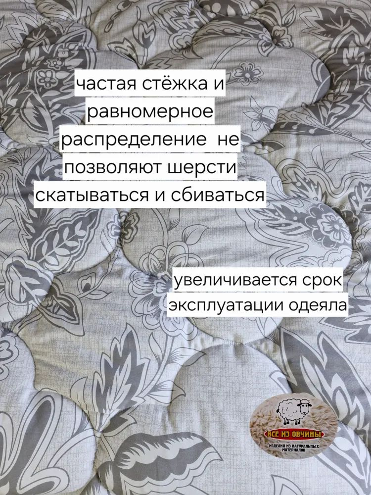 Овечья шерсть обладает уникальными свойствами, которые делают одеяло из нее особенно комфортным и теплым. Это всесезонное одеяло изготовлено из высококачественных материалов, которые обеспечивают оптимальный температурный режим и отличную вентиляцию.