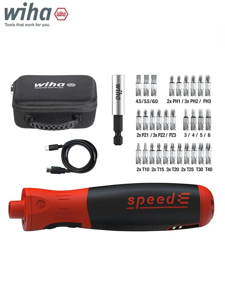 Wiha 45791 Электрическая отвертка speedE PocketDrive 31 набор бит Различные размеры Гибкий Магнитный