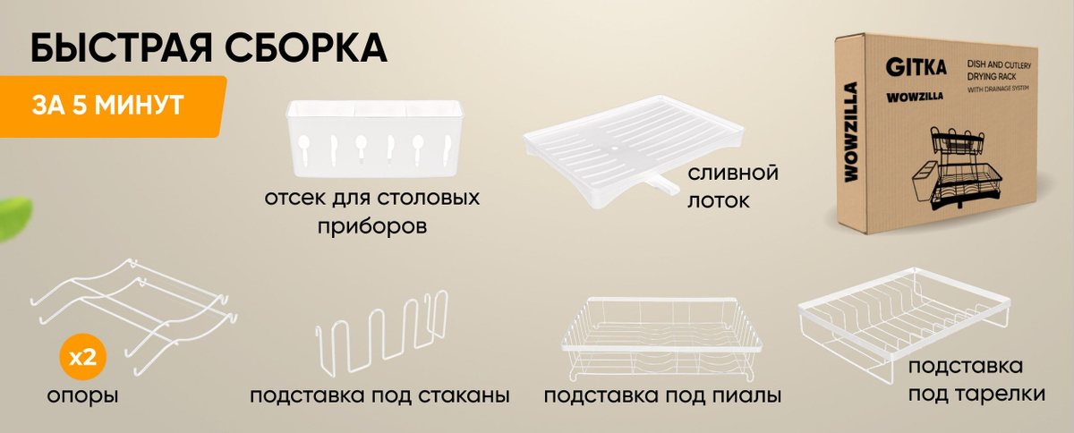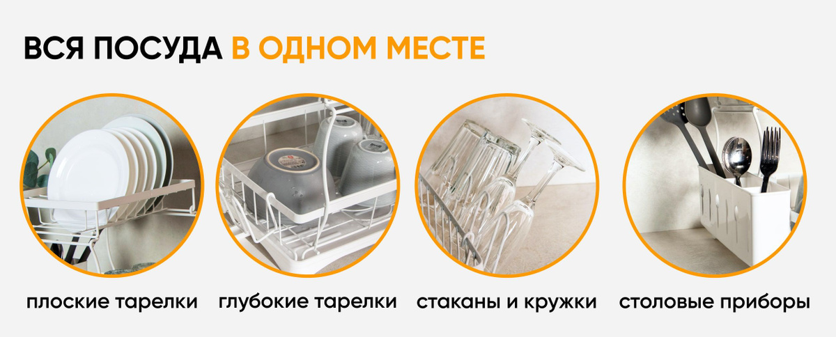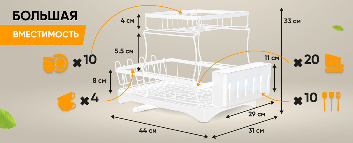 Сушилка для посуды настольная с поддоном - 1 шт.