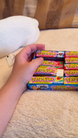 Сахар, резиновая основа, глюкозный сироп, глюкоза, эмульгатор (лецитин), загустители (гуммиарабик, глицерин). регулятор кислотности (кислота лимонная), усилитель вкуса (аспартам), глазирователь (воск карнаубский), ароматизаторы (виноград, клубника, тутти-фрутти, арбуз, кола), красители (Е102, Е110, Е129, Е133, Е171). Не рекомендовано детям до 3-х лет. Содержит красители Е102, Е110, Е129, которые могут оказывать отрицательное влияние на активность и внимание детей. Содержит источник фенилаланина. Без ГМО.