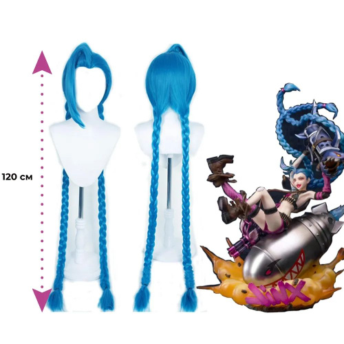 League of Legends Парик для косплея Jinx Общая длина 120 см