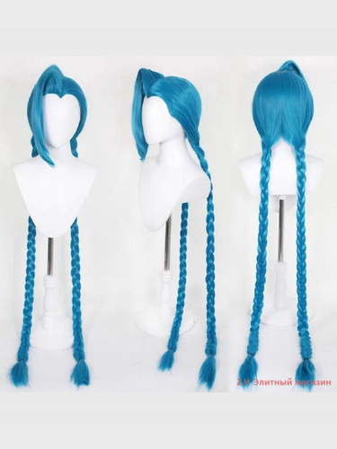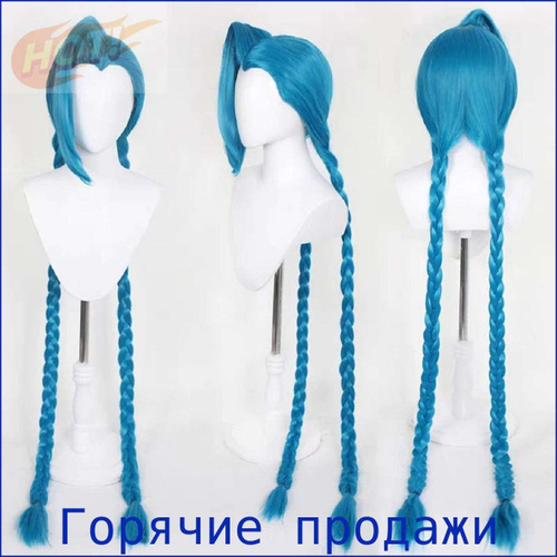 Синий парик для косплея с длинной косой для парика League of Legends Jinx