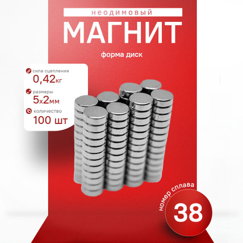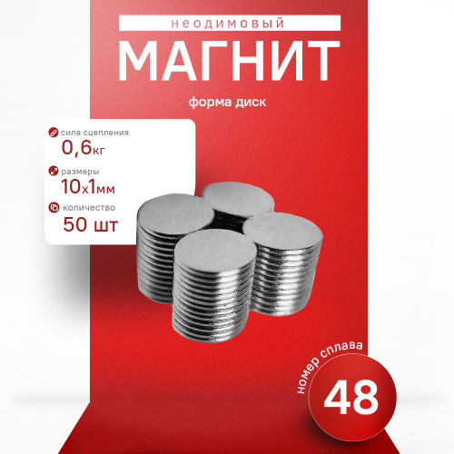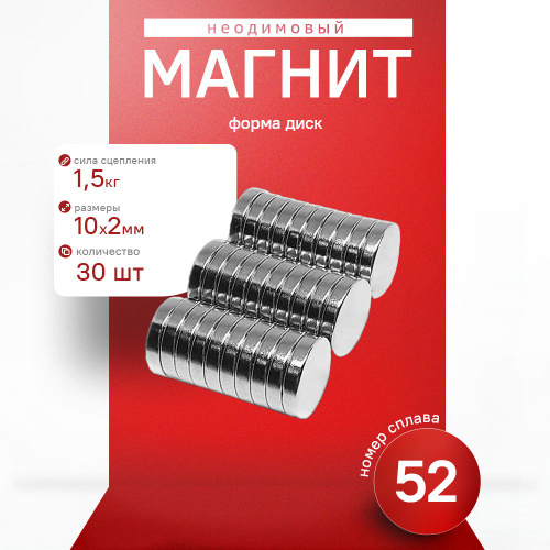 Неодимовый Магнит диск 10х2 мм. 30 штук 1 упаковка 490 Гаусс