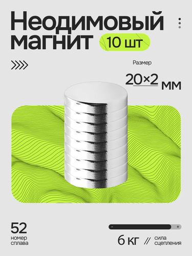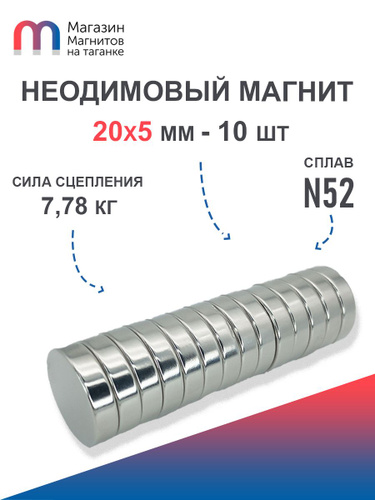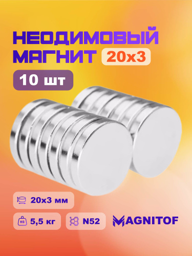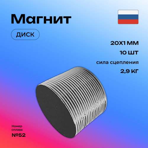 Неодимовый магнитный диск 20х3 мм (N52 на 5,8 кг) - 10 шт
