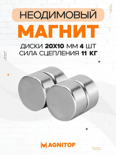 Неодимовый магнит диск 20x10 мм на 11 кг 2 шт